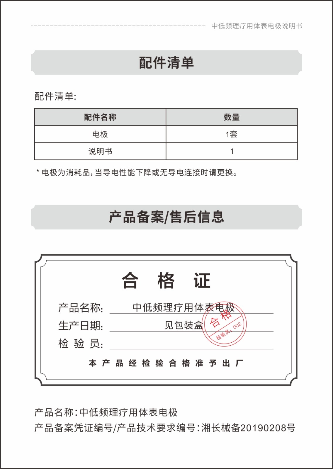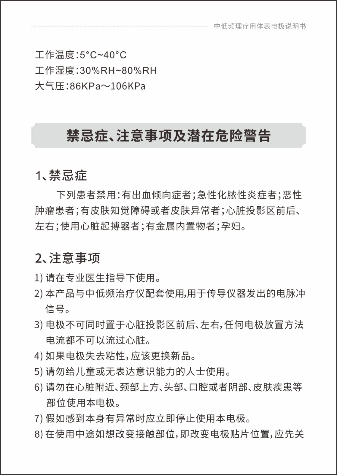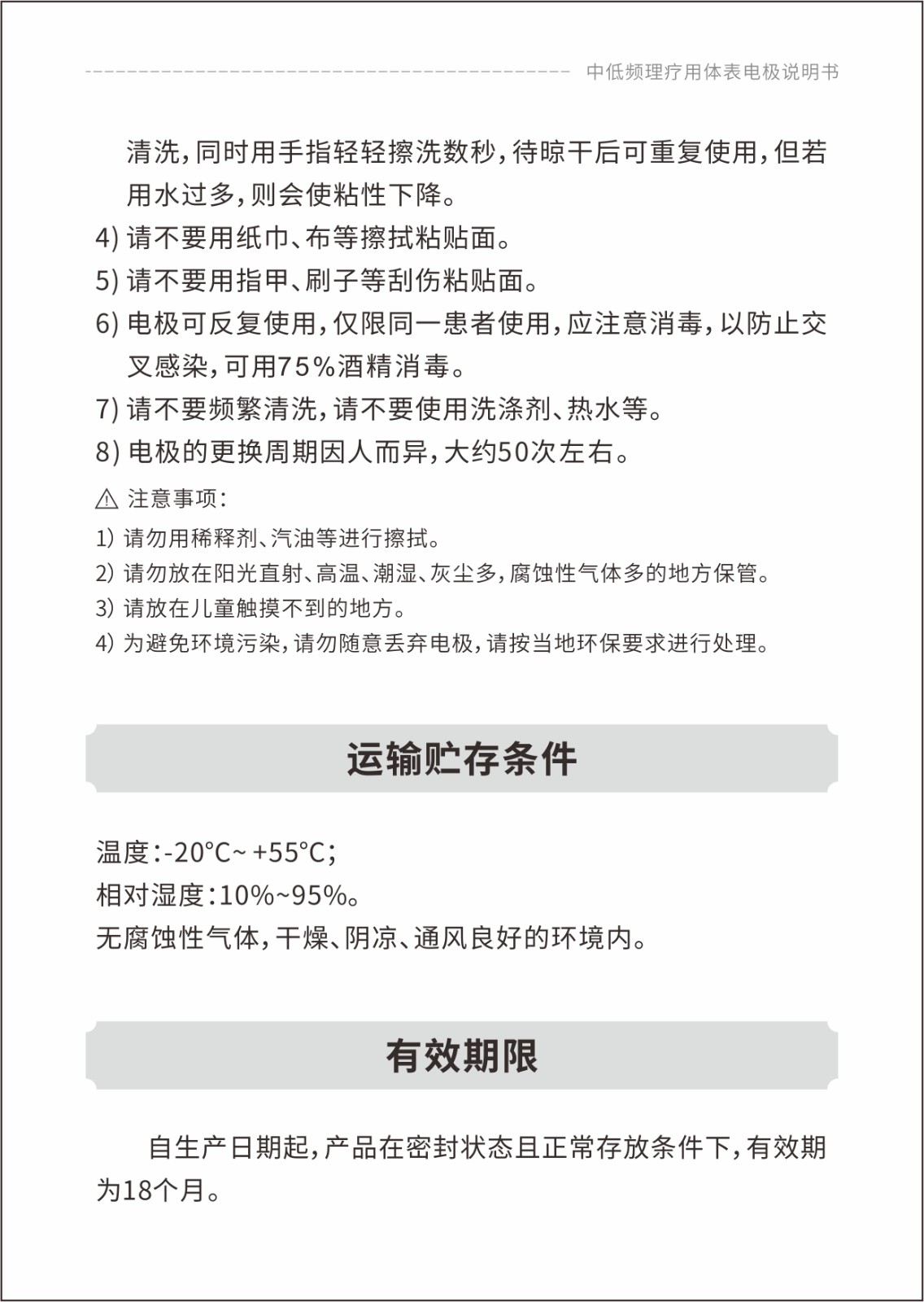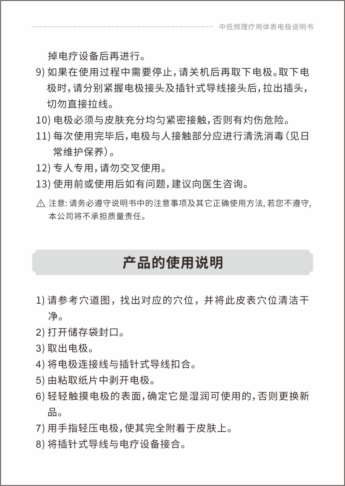 中低頻理療用體表電極貼片說(shuō)明書(shū)